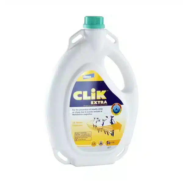 Clik Extra Pour On is used for the prevention of blowfly strike on sheep caused by Lucilia sericata or Wohlfahrtia magnifica.