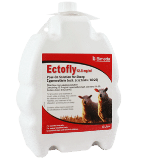 Ectofly 12.5 mg/ml Pour-On Solution for Sheep, containing 12.5 mg/ml cypermethrin, is convenient pour on for the control and treatment of a broad range of sheep ecto-parasites.