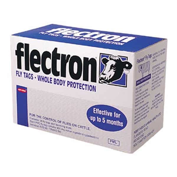 Fly tags for season-long control of nuisance and biting flies in cattle. Apply tags with the flectron ear gun.