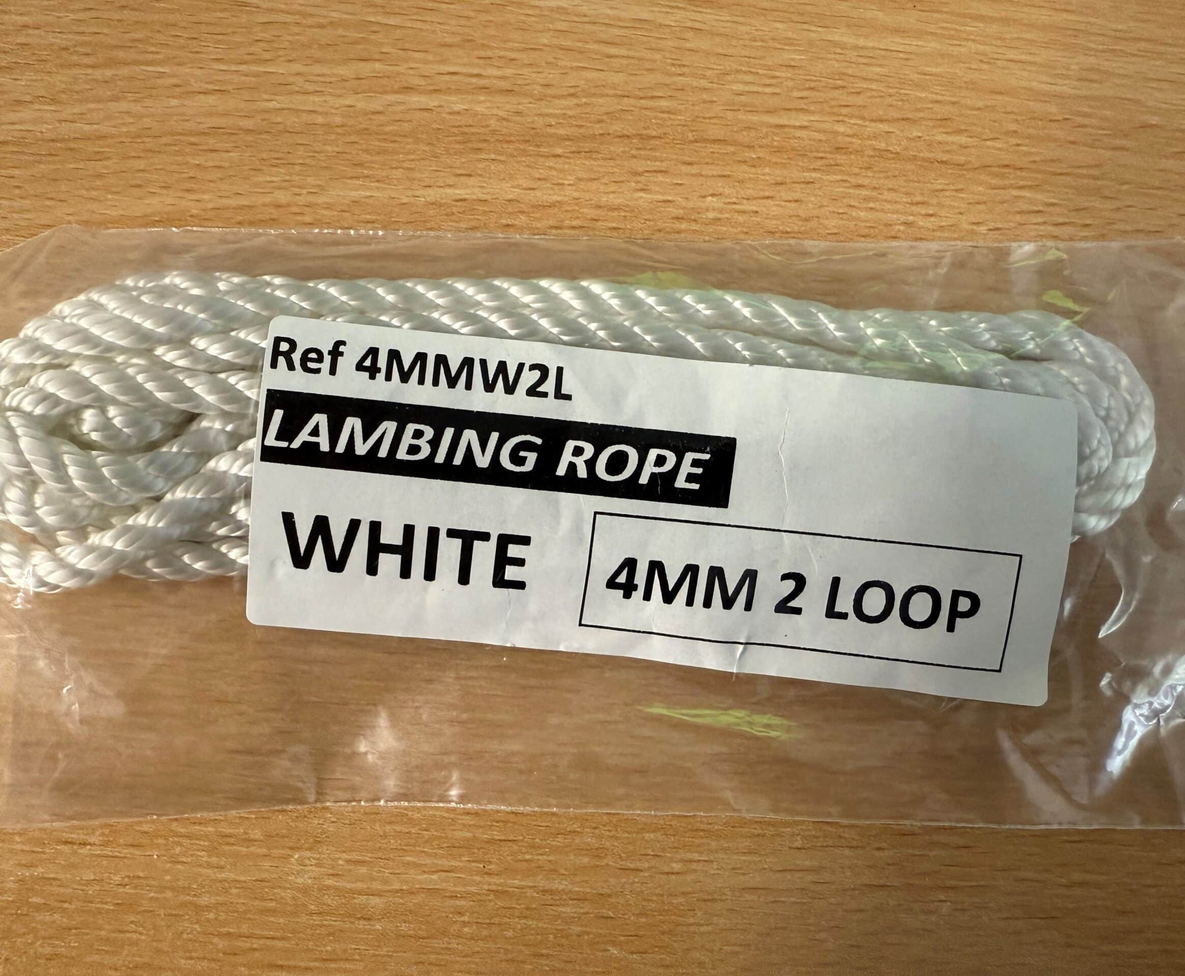 A soft nylon 4mm lambing rope with 2 loops.