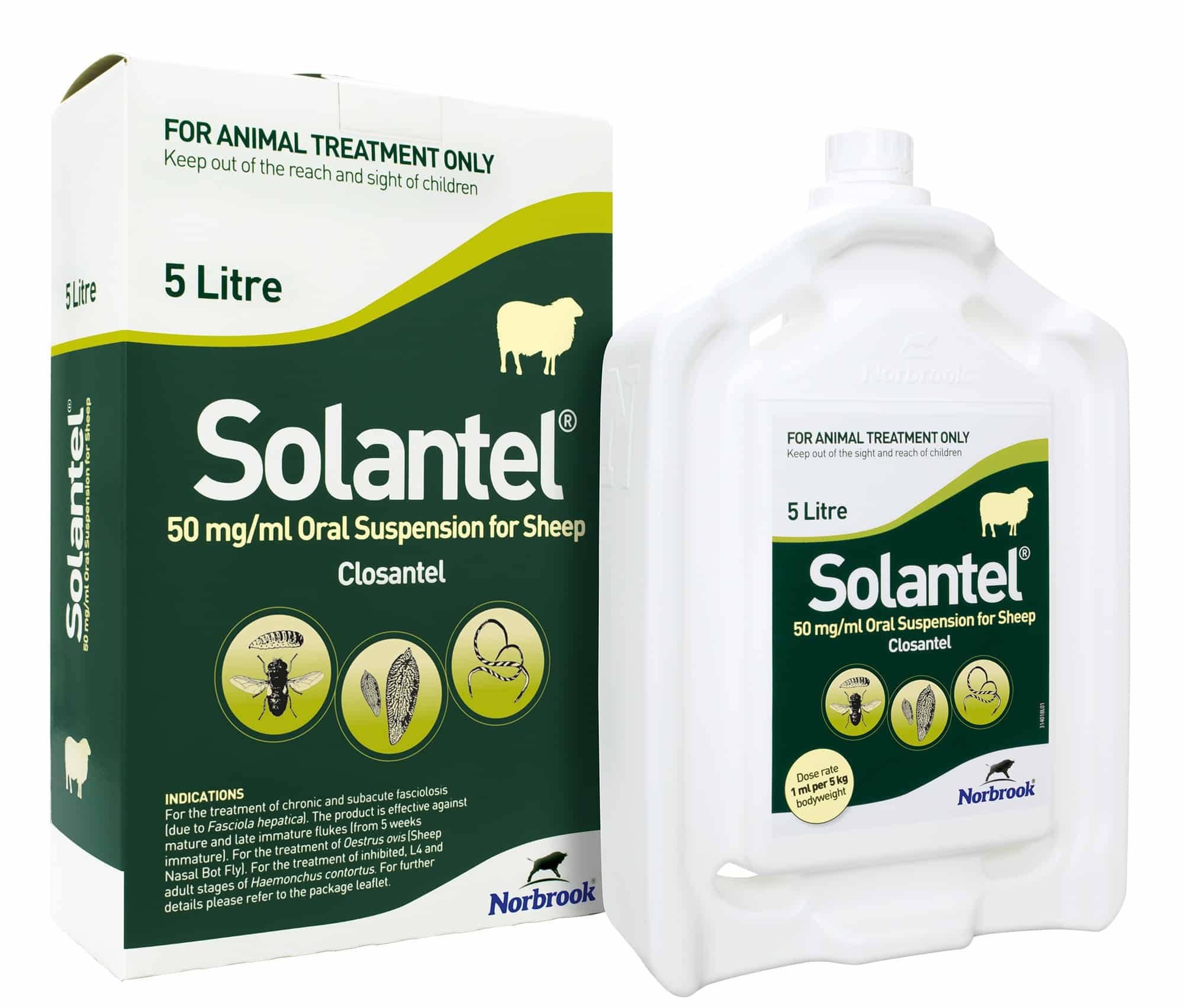 Solantel Oral Suspension for Sheep: Is a Closantel product used for the treatment of chronic and subacute fasciolosis (due to Fasciola hepatica). The product is effective against mature and late immature flukes (from 5 weeks immature).
