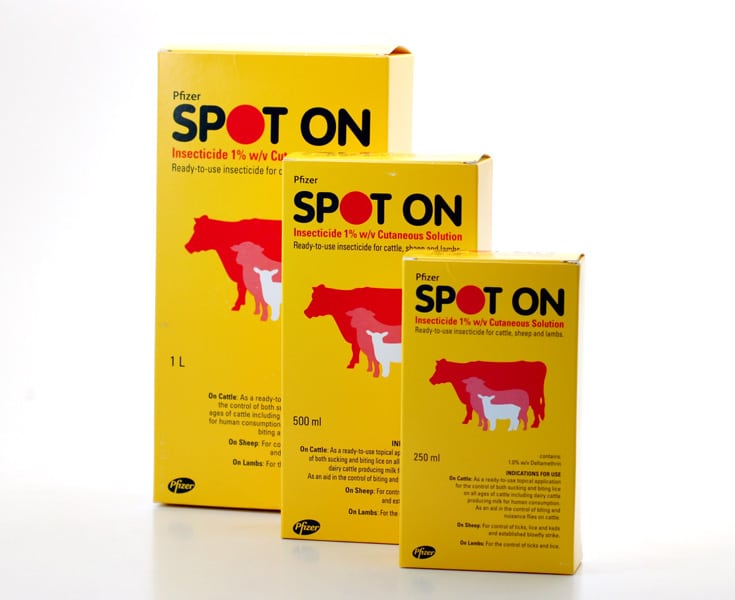 DOSE: ready to use insecticide for cattle, sheep and lambs- application depends on use but it is one spot along the back of the animal or where established blow fly it is directly to the infested area.Â